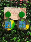 These stunning handmade Psalm 23 earrings are bold, meaningful, and full of island flair. Each pair features a beautifully hand-painted green, yellow, and black swirl inspired by Jamaican colors, paired with the powerful scripture: “Psalm 23 – The Lord Is My Shepherd.”